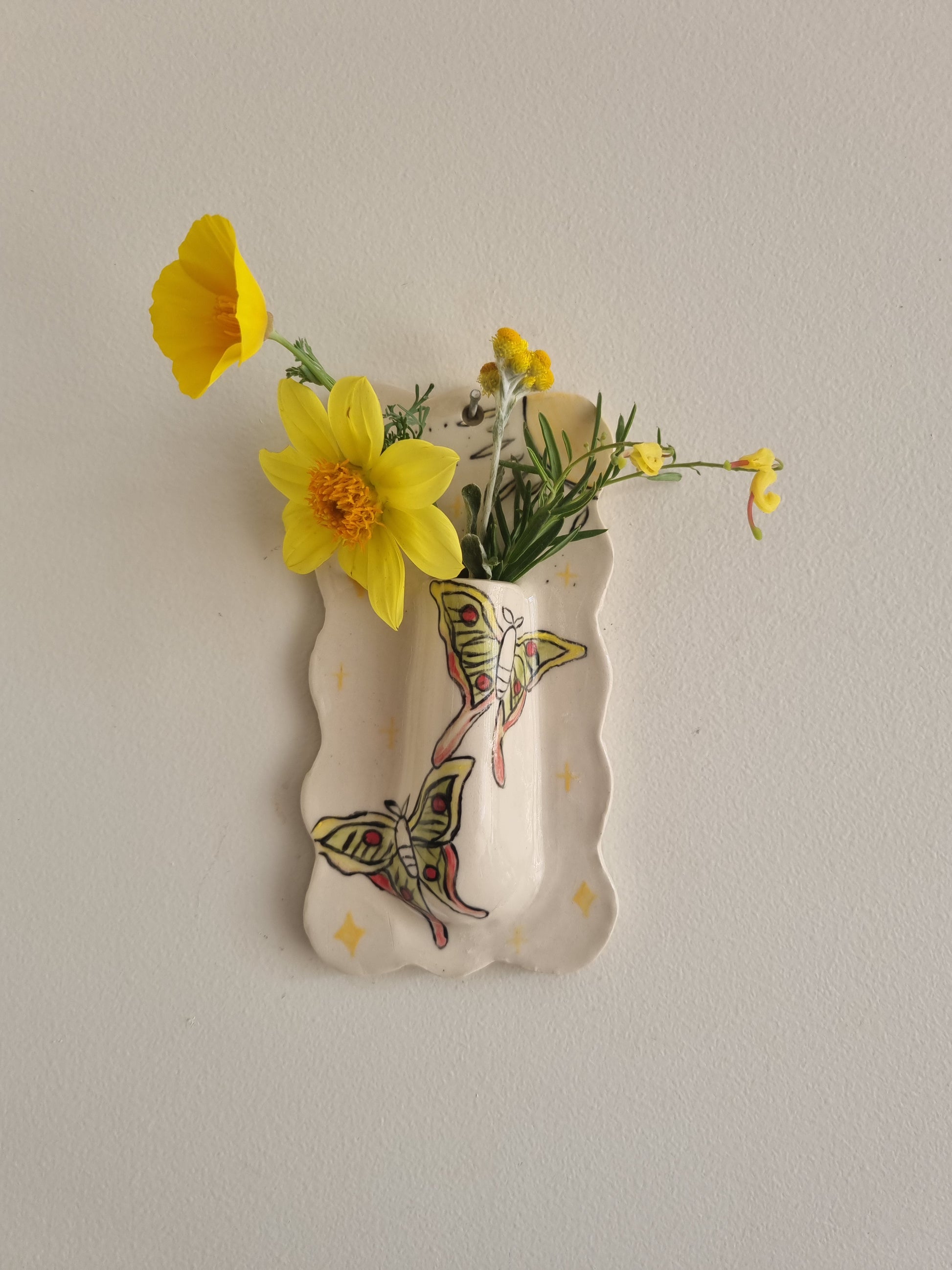 Our hand-painted ceramic wall vases feature a variety of fun, unique designs that add a lively touch to any room. This collection is always growing, so stay tuned for new additions. Currently, all designs are out of stock and being carefully crafted. To pre-order, simply email loop_sisters@outlook.com with your name and address. Once your order is placed, we will send you an invoice. Don’t miss the chance to own one of these vibrant, artistic pieces—reserve yours today!