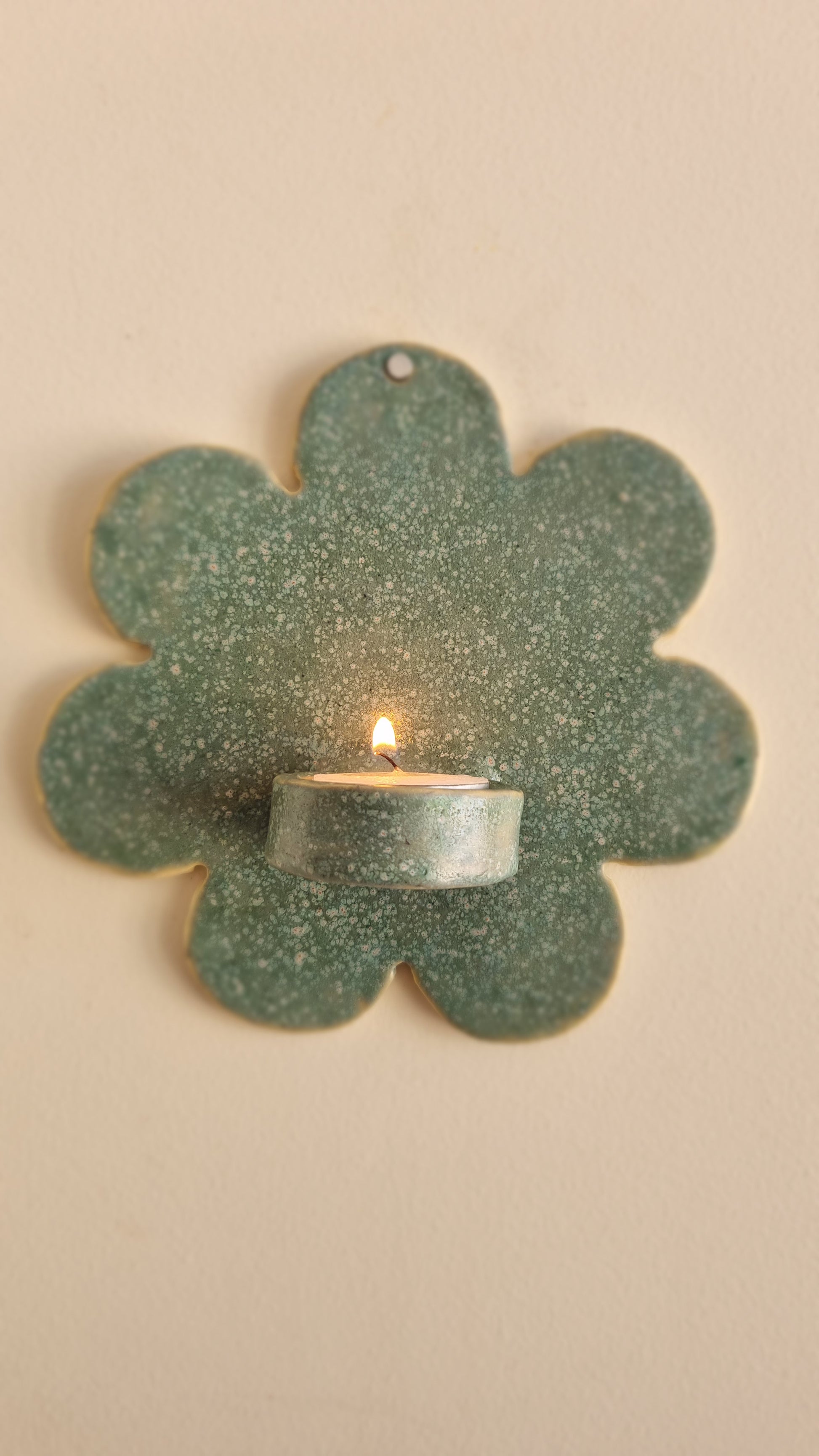Lagoon coloured sconce - daisy shape. Made for a tealight candle.